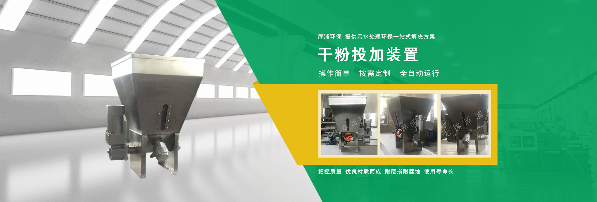 無(wú)錫厚浦環(huán)保科技有限公司專(zhuān)業(yè)生產(chǎn)干粉投加/在線(xiàn)稀釋裝置 網(wǎng)站建設(shè):無(wú)錫網(wǎng)科 備案號(hào):蘇ICP備14012459號(hào)-6 蘇公網(wǎng)安備32028202232136號(hào)